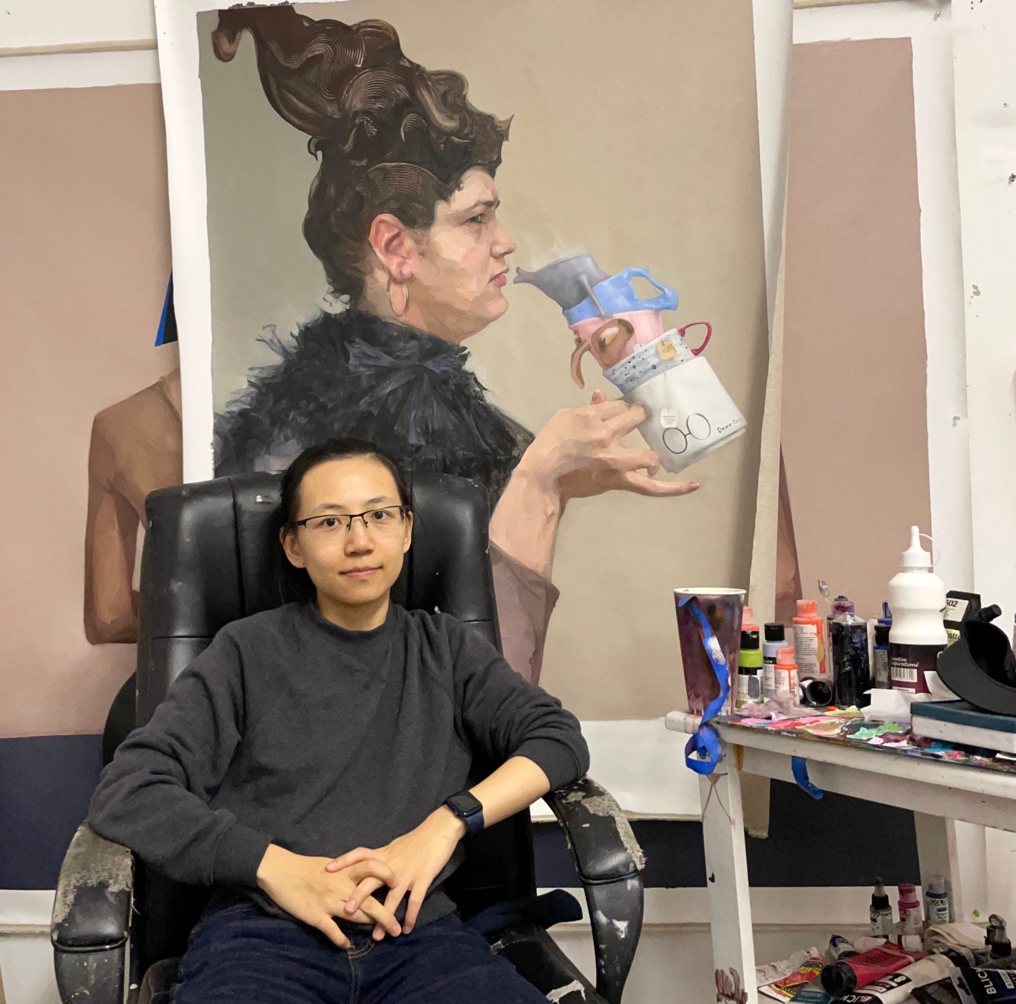 Deng Shiqing creates work that conveys some of the very contradictions of being a professional artist based in China. Whether she’s working on paper or canvas, large or small, she manages to find a delicate balance classical traditions and modern, contemporary sensibilities. Most of her figurative works depict human subjects, many of whom are based on close friends or family members, and they’re often portrayed as somewhat resigned or disaffected. Shiqing earned an MFA at the New York Academy of Fine Art. Her work has been exhibited at the National Museum of China in Beijing, Da Fen Art Museum in Shenzen, the United Nations’ building, Sotheby’s in New York City, as well as in group shows in New York and Miami.