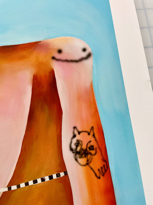 Each work is unique with airbrushed "tattoos" hand applied by the artist